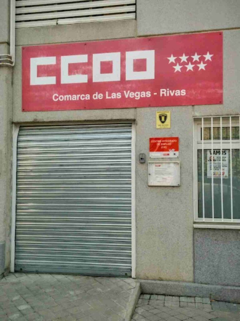 CCOO Rivas se encuentra en la calle de Frida Kahlo, en una ubicación accesible de Rivas Vaciamadrid, ofreciendo un punto de contacto cercano para trabajadores y empresas que necesitan asistencia laboral o información sobre derechos sindicales.